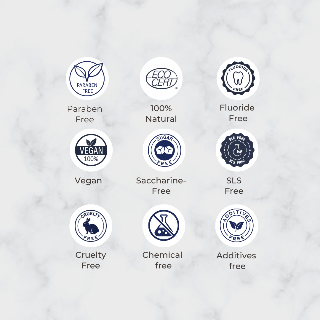 Free from Fluoride, SLS, Saccharine, and Parabens—and certified by Ecocert & COSMOS Natural—Sudanta offers complete oral care with ZERO synthetic additives.Schalten Sie nahtlose Transaktionen frei.
