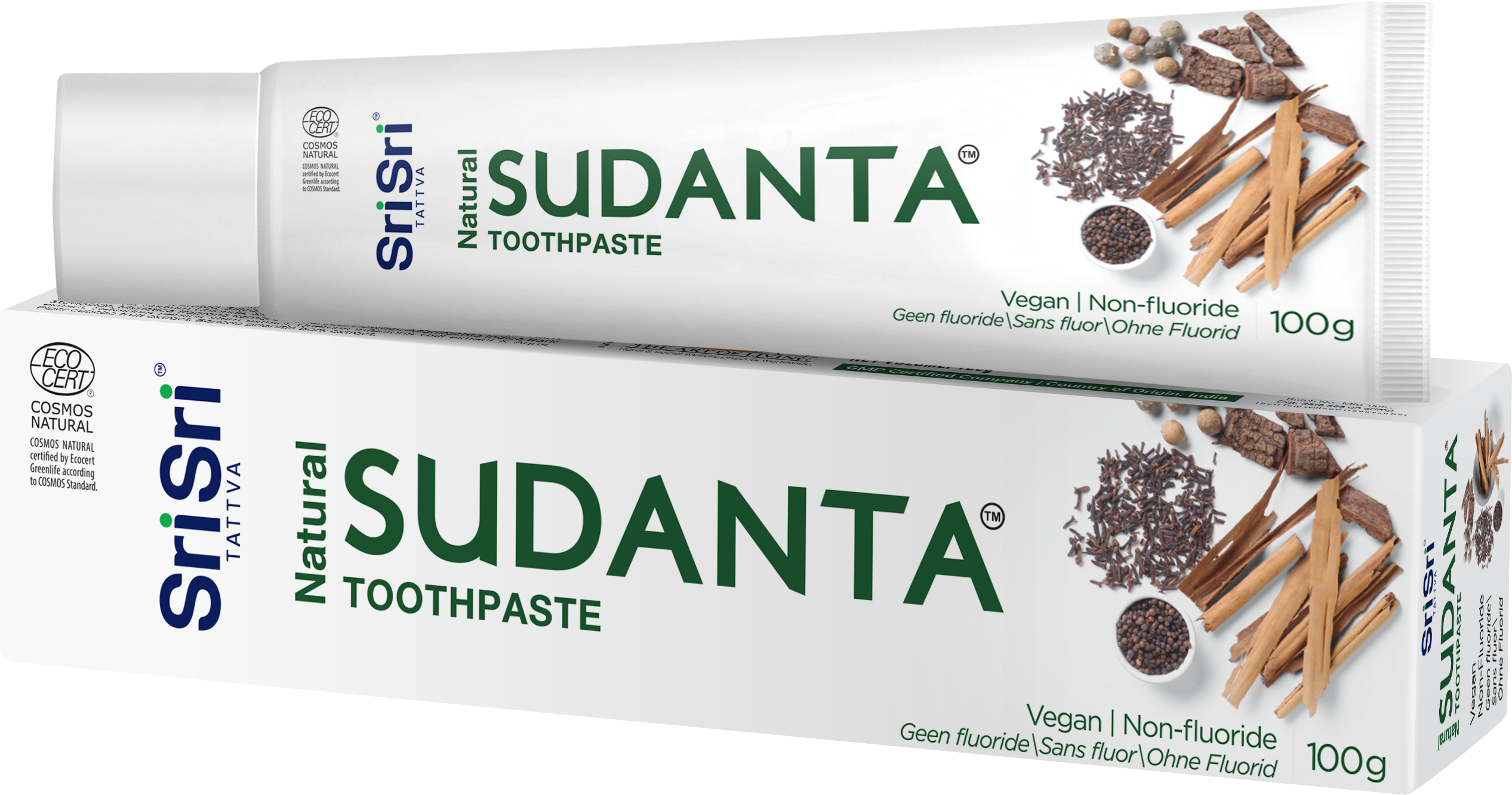 100 % natürlich, ohne Fluorid, ohne Zucker, ohne Parabene, ohne SLS und zertifiziert von Ecocert und COSMOS Natural – die Sudanta-Zahnpasta von Sri Sri Tattva bietet mit jedem Zähneputzen eine wirkungsvolle ayurvedische Mundpflege.