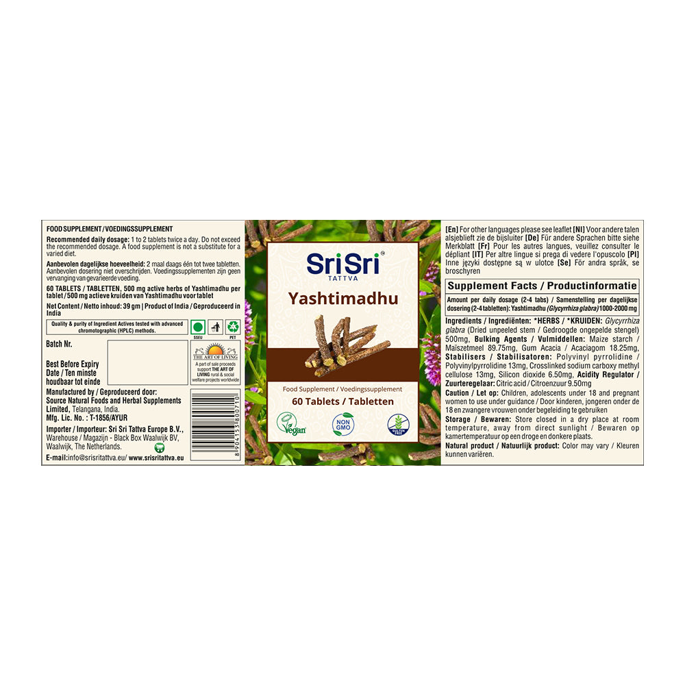 Yashtimadhu-Tabletten werden aus Süßholzwurzelextrakten hergestellt. Diese Wurzeln werden in Indien häufig wegen ihres starken Aromas und Geschmacks verwendet. Die Wurzeln sind braun und haben grüne, ovale Blätter. In der Natur kommt sie in Form kleiner Sträucher vor. Die Wurzeln werden getrocknet und dann verwendet. Yashtimadhu ist eines unserer führenden Produkte, das im besten Interesse unserer Kunden nach ayurvedischen Verfahren hergestellt wird.