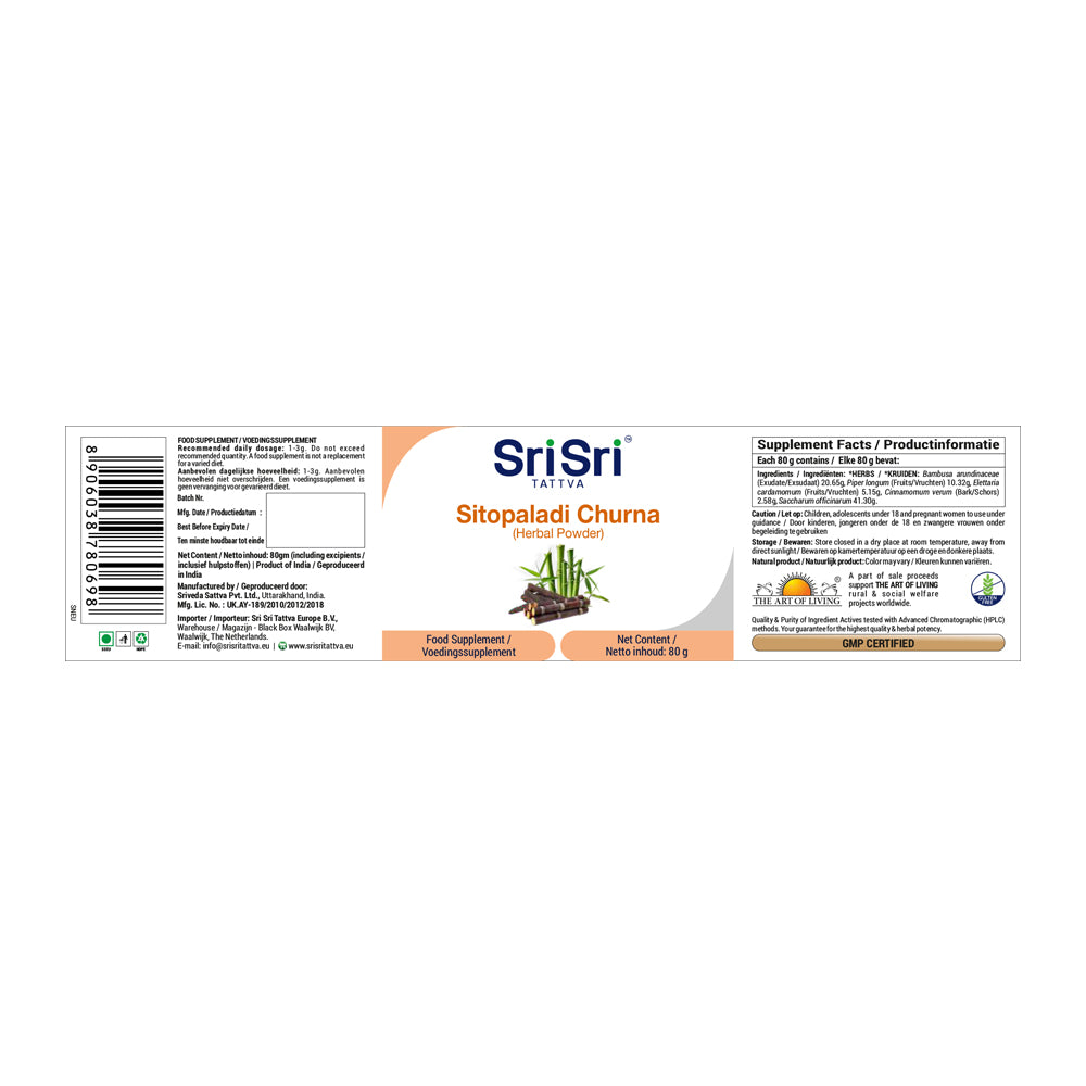 Sitopaladi Churna besteht aus Bambusmanna (Bambousa arundinacae), Pippali (bekannt als asiatischer Langpfeffer), Kardamom und Zimt. Bambus ist eine Delikatesse im Süden Indiens. Gewürznelken sind für ihren leicht würzigen Nachgeschmack und ihr Aroma bekannt.