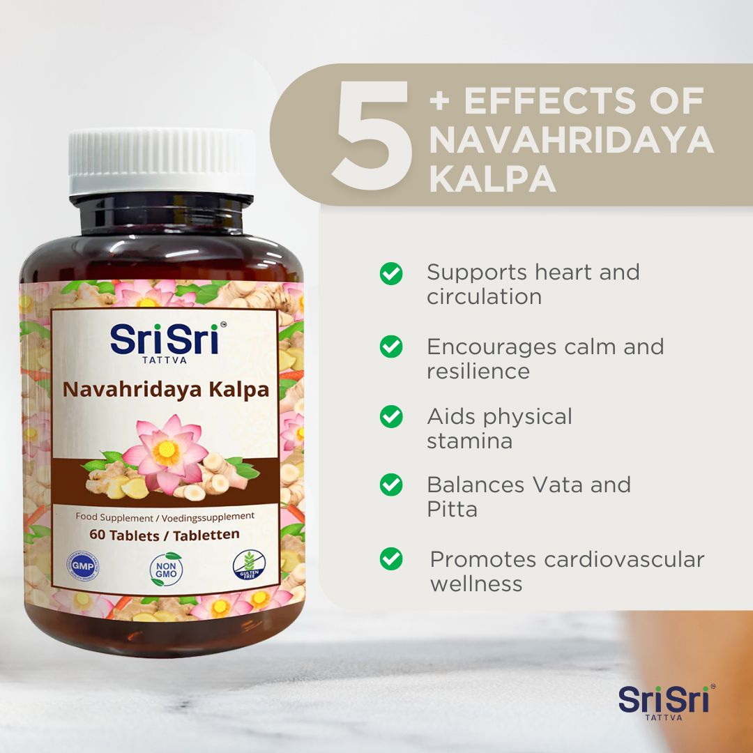 Navahridaya Kalpa is an ayurvedic proprietary formulation from Sri Sri Tattva. It is a perfect blend of 11 Ayurvedic herbs. The Navahridaya Kalpa tablets are made from the powder of authentic Ayurvedic Herbs.