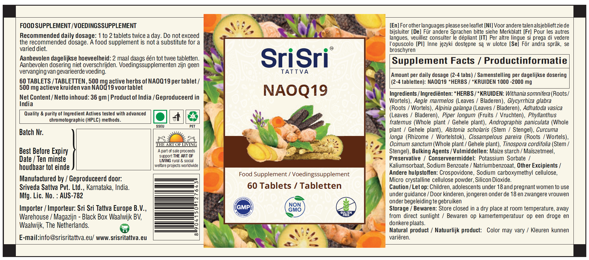 Crafted using time-honored Ayurvedic principles, NAOQ19 helps maintain harmony within the body, supporting overall wellness and vitality.