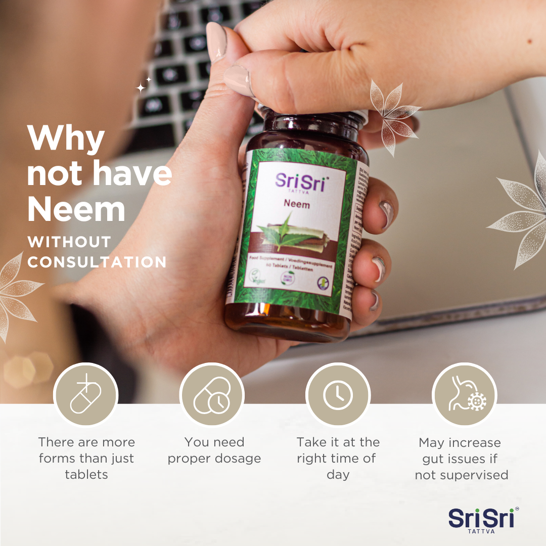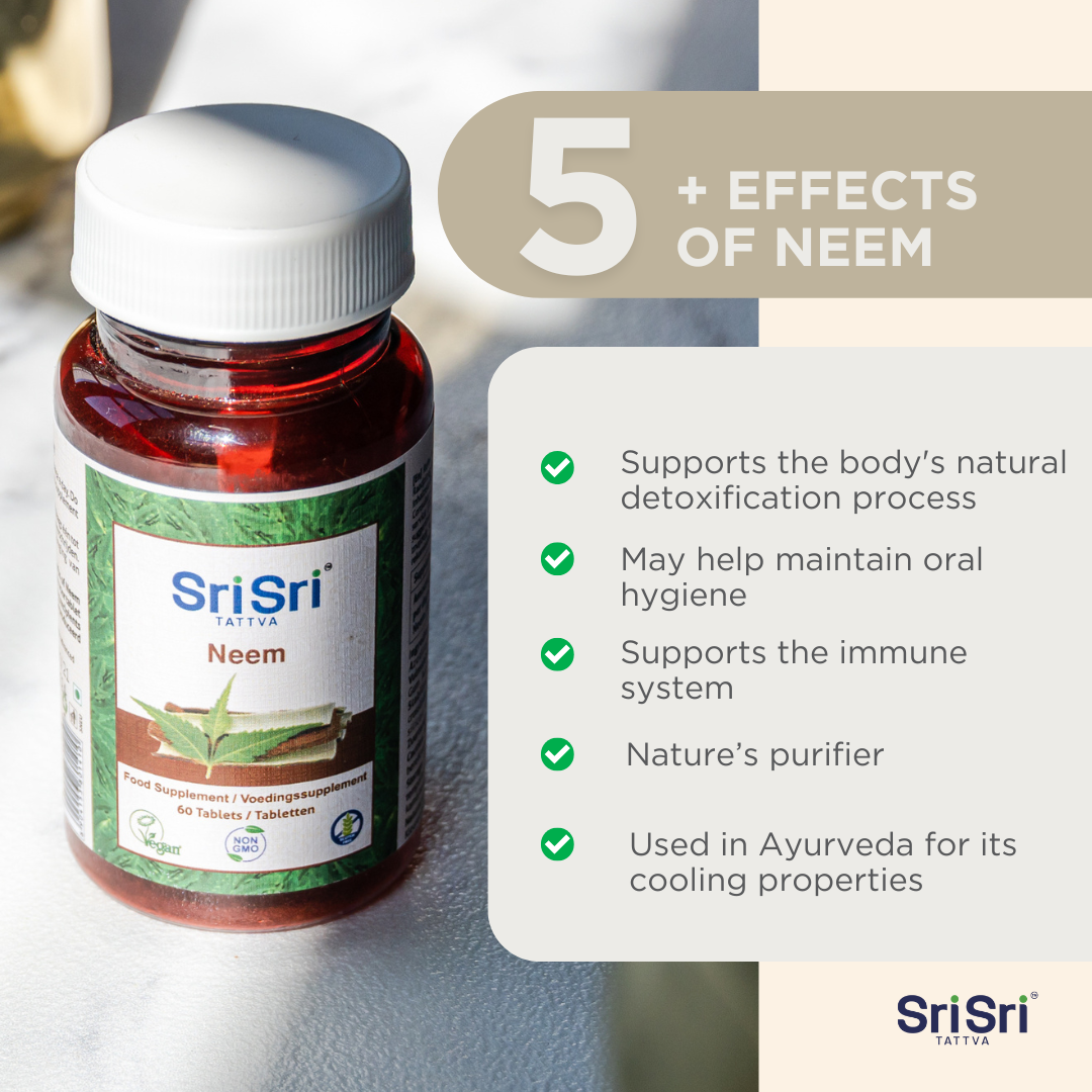 EXCELLENT PRICE-PERFORMANCE RATIO: Sri Sri Tattva Neem tablets contain high quality Neem sourced directly from India. The powder is processed and delivered to you in packs of 60 Neem Tablets.