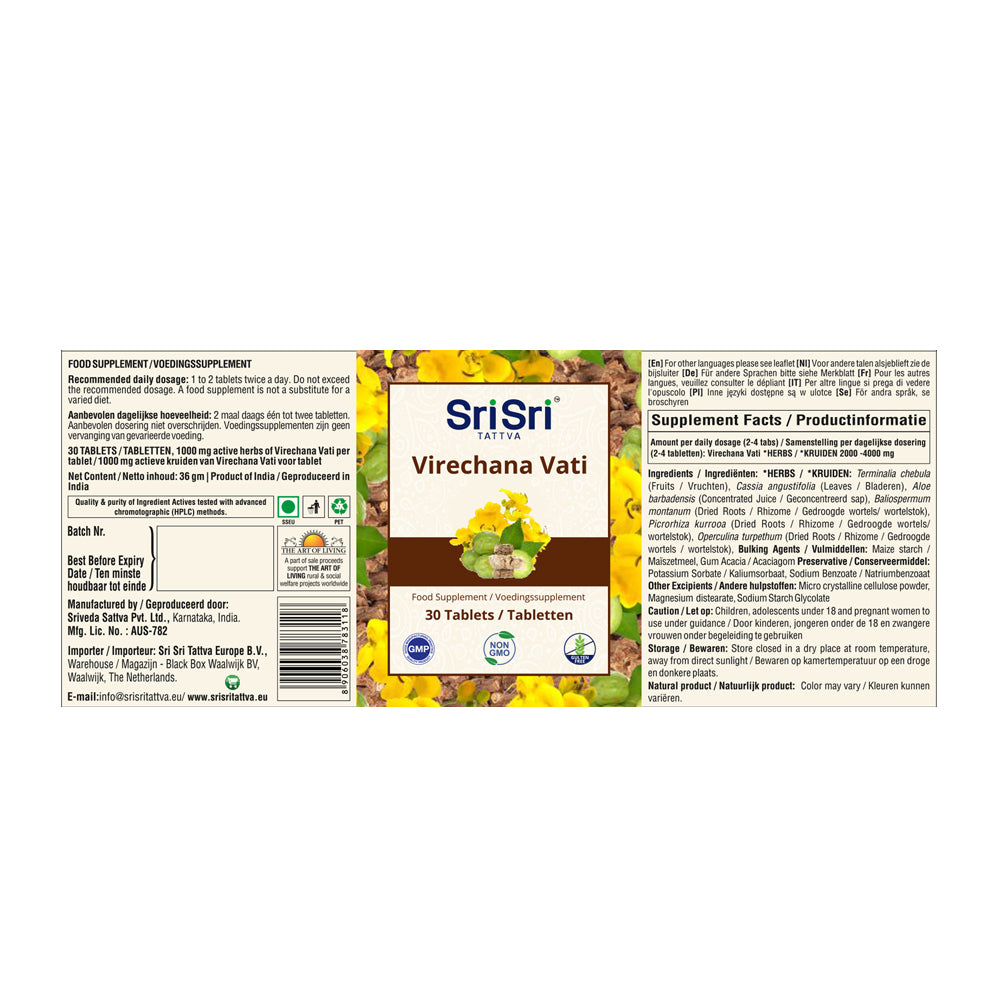 Virechana Vati Tablets is a herbal tablet formulation sometimes used in Ayurvedic Detox procedures, e.g. Panchakarma. The Detox process, in Ayurveda, is also known to bring clarity to the mind. Virechana Vati is one of our leading products.