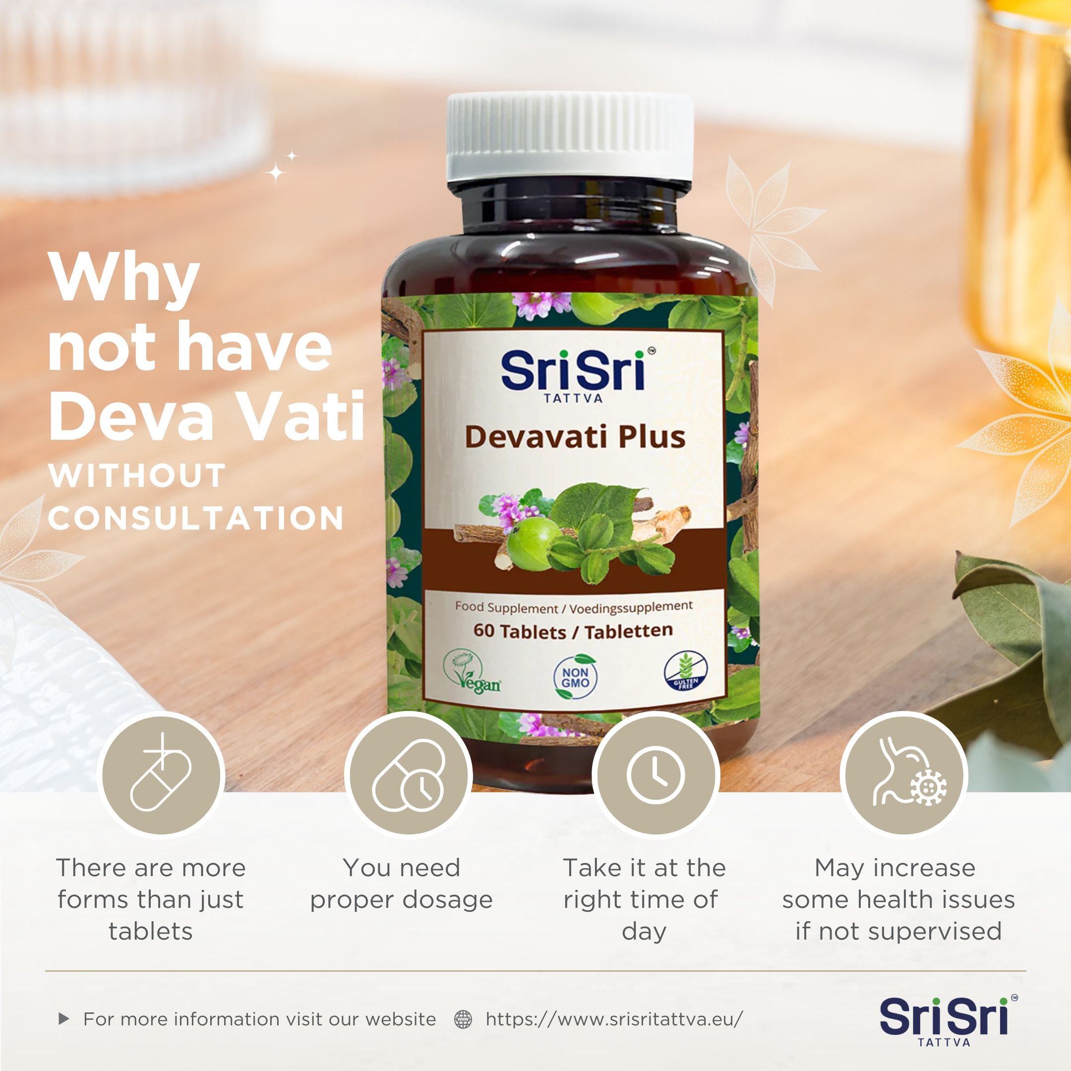 Deva Vati Tablets are a combination of essential herbs such as giloy, ashwagandha and bhringraj. Dev Vati was developed to also balance the Ayurveda tridosha.